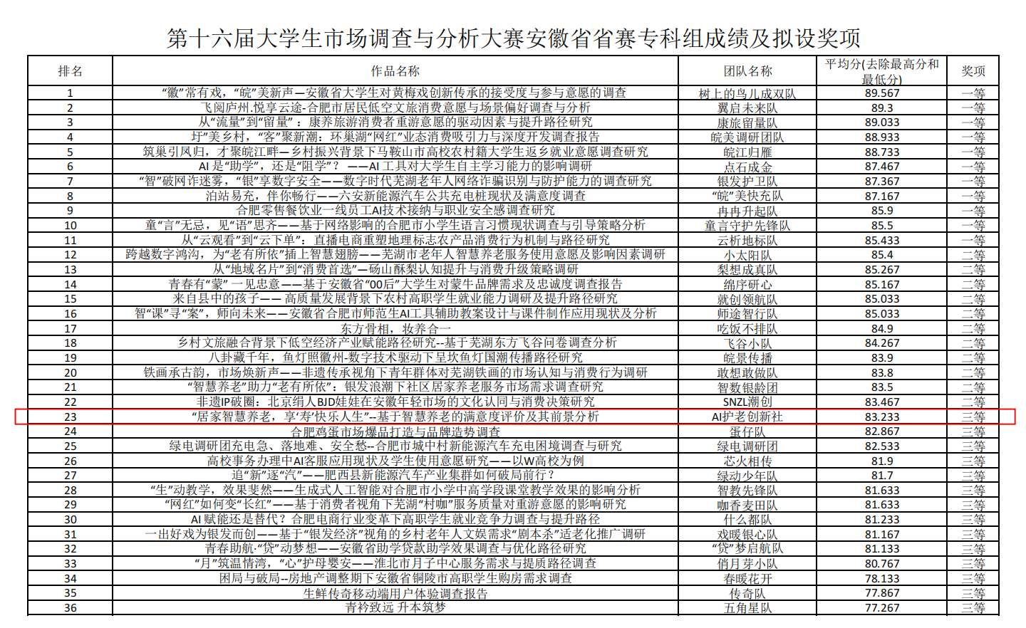 【喜报】学院在第十六届大学生市场调查与分析大赛安徽省省赛专科组中斩获省赛三等奖