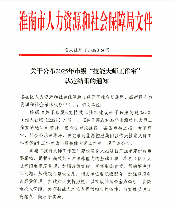 2025年10月16日,淮南市人力资源和社会保障局正式公布了2025年市级“技能大师工作室”认定名单,淮南职业技术学院智能与电气工程学院马艳梅老师主持的“马艳梅技能大师工作室”成功入选,标志着学院在高技能人才培养平台建设方面取得重要突破。
