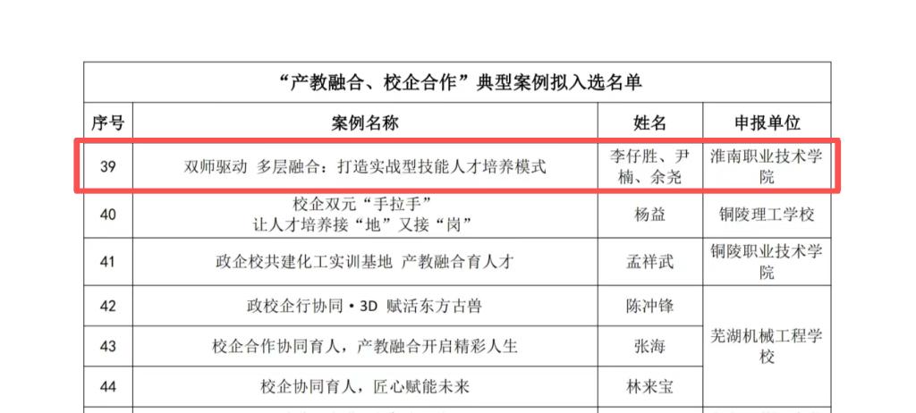 近日,安徽省职业与成人教育协会公示了2025年度“产教融合、校企合作”典型案例拟入选名单。淮南职业技术学院智能与电气工程学院联合深圳市讯方技术股份有限公司(以下简称“讯方技术”)申报的《双师驱动 多层融合:打造实战型技能人才培养模式》案例成功进入拟入选名单。