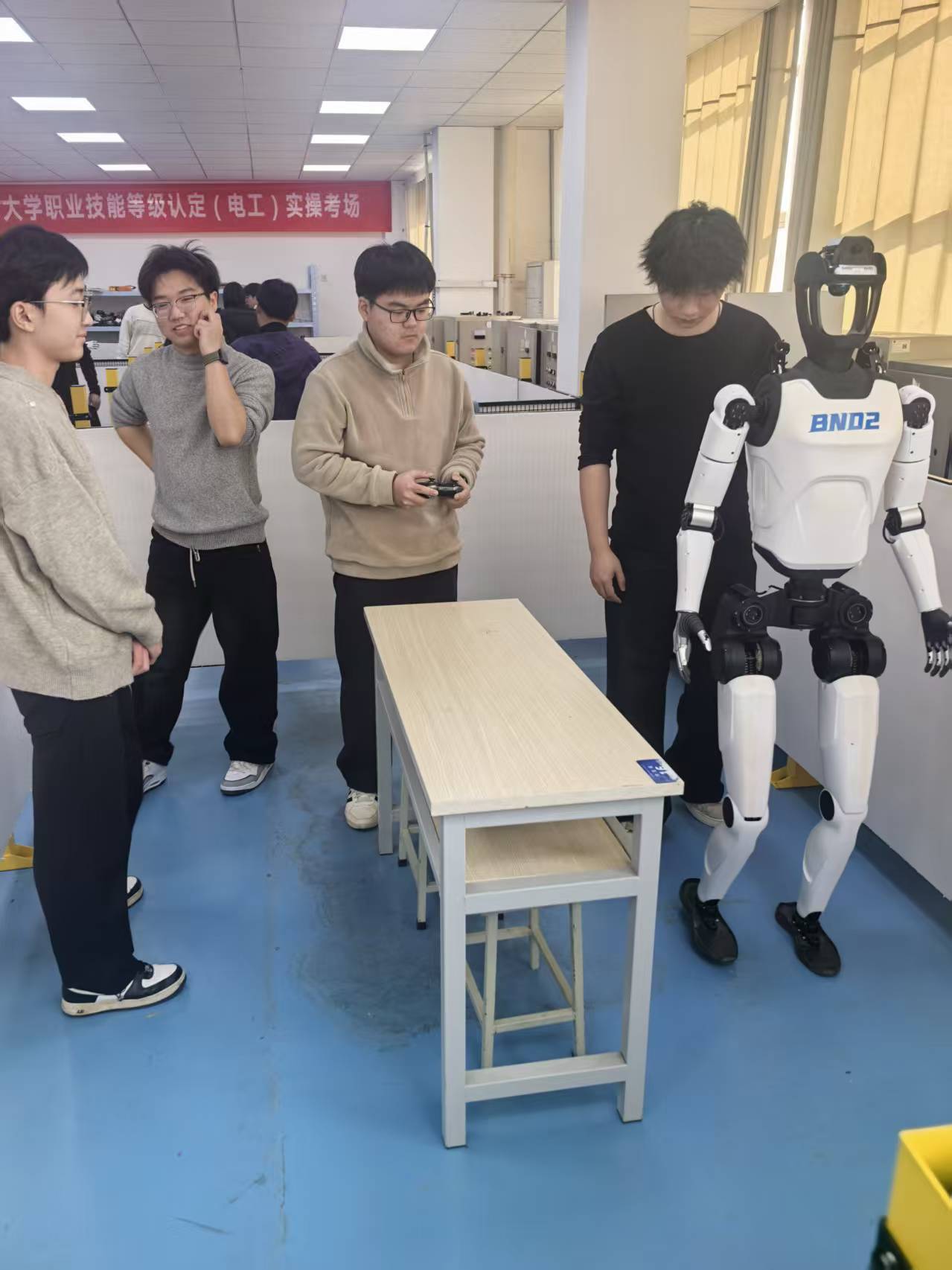 本次赛项分为技能实操和现场汇报展示两大模块,重点考察选手人形机器人编程调试、场景应用开发、团队协作及问题解决等综合能力,实操环节更是要求选手在规定时间内完成机器人手部装配调试、路径规划、人机交互等复杂任务。我校参赛学子沉着冷静、分工协作,严格按照赛事要求,精准完成每一项操作,细致排查技术隐患,在编程调试和场景创新环节展现出独特思路,学子从容应对各类突发情况,顺利完成全部竞赛任务。