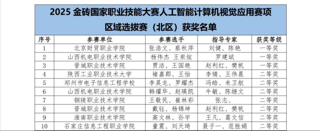 此次亮眼战绩,不仅充分彰显了我院学子在人工智能计算机视觉领域的过硬专业技能与高效协作风采,更是学院深耕“岗课赛证”一体化育人改革、深化人工智能产业协同创新的生动缩影。未来,学校将以此次晋级国际赛事为重要契机,持续迭代优化人工智能技术应用类人才培养体系,强化技术实操与产业需求的精准契合,厚植创新育人土壤、锤炼学生实战本领,为区域人工智能产业升级与数字经济高质量发展注入更为强劲的职教动能!(撰稿:葛文信 审核:吴访、曹祺 发布:尹楠)